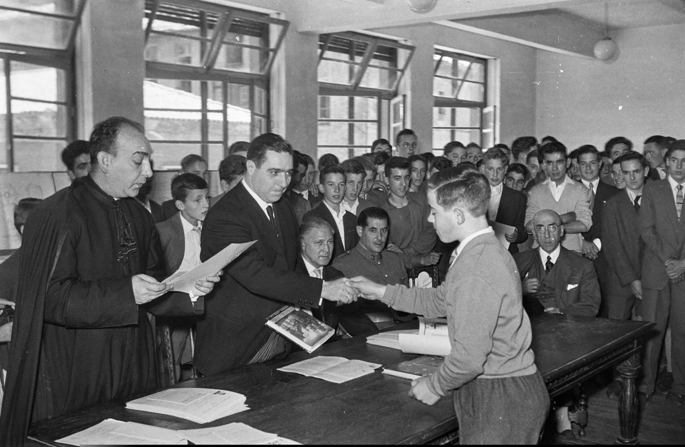 | Elementaleko ikasleei sari banaketa | Escuela Elemental. Reparto premios 18 de julio 1958 |
