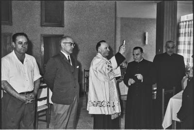 Apaiza bedeinkatzen eta gizonak inguruan | Restaurante Antxoni 27-mayo-1966 -Inauguración |