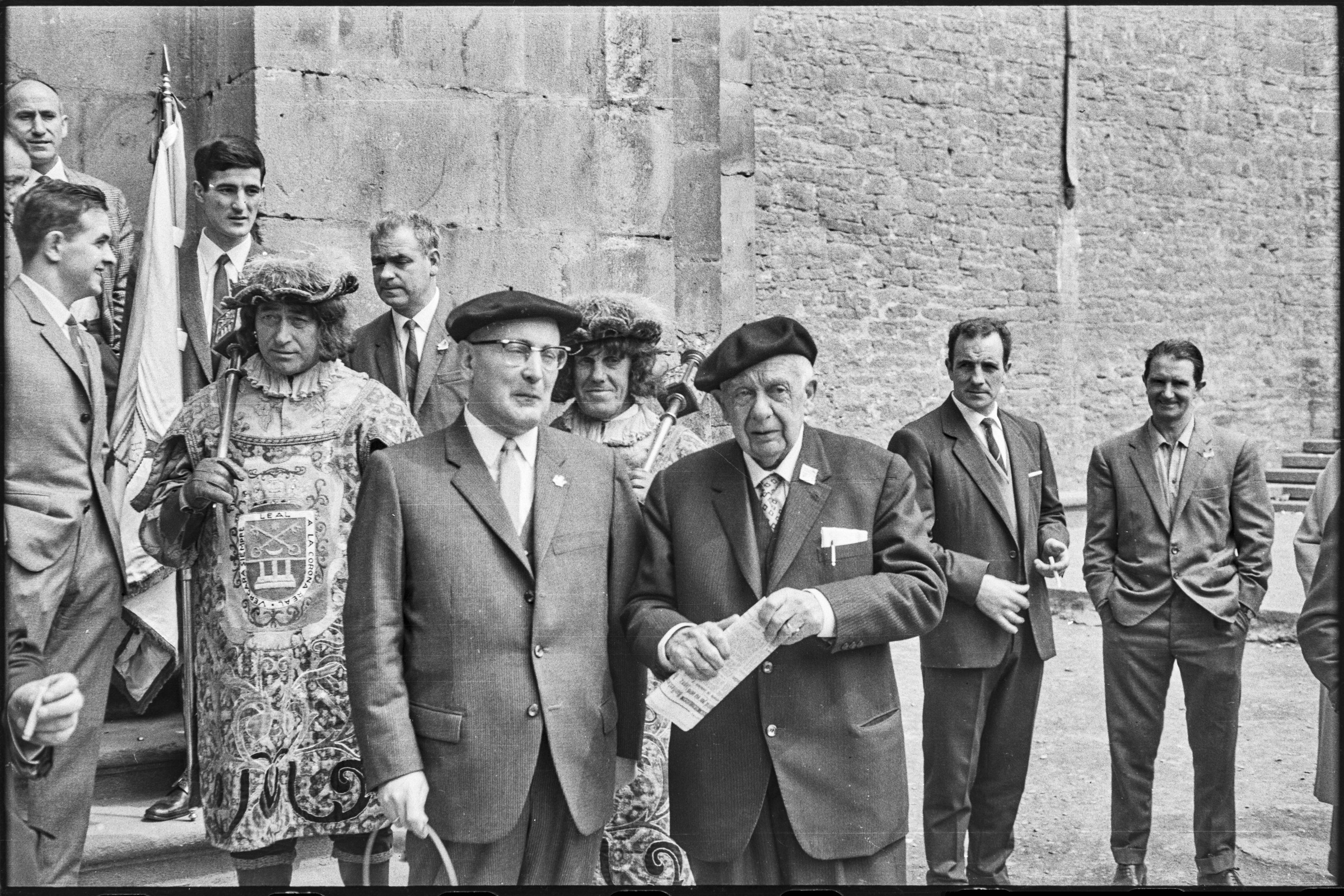 | Udal Agintariak San Pedro elizatik ateratzen. Atzean mazeroak eta jendea gehiago ageri da. | Jubilados - Del 1 al 63 30-abril-1967 |
