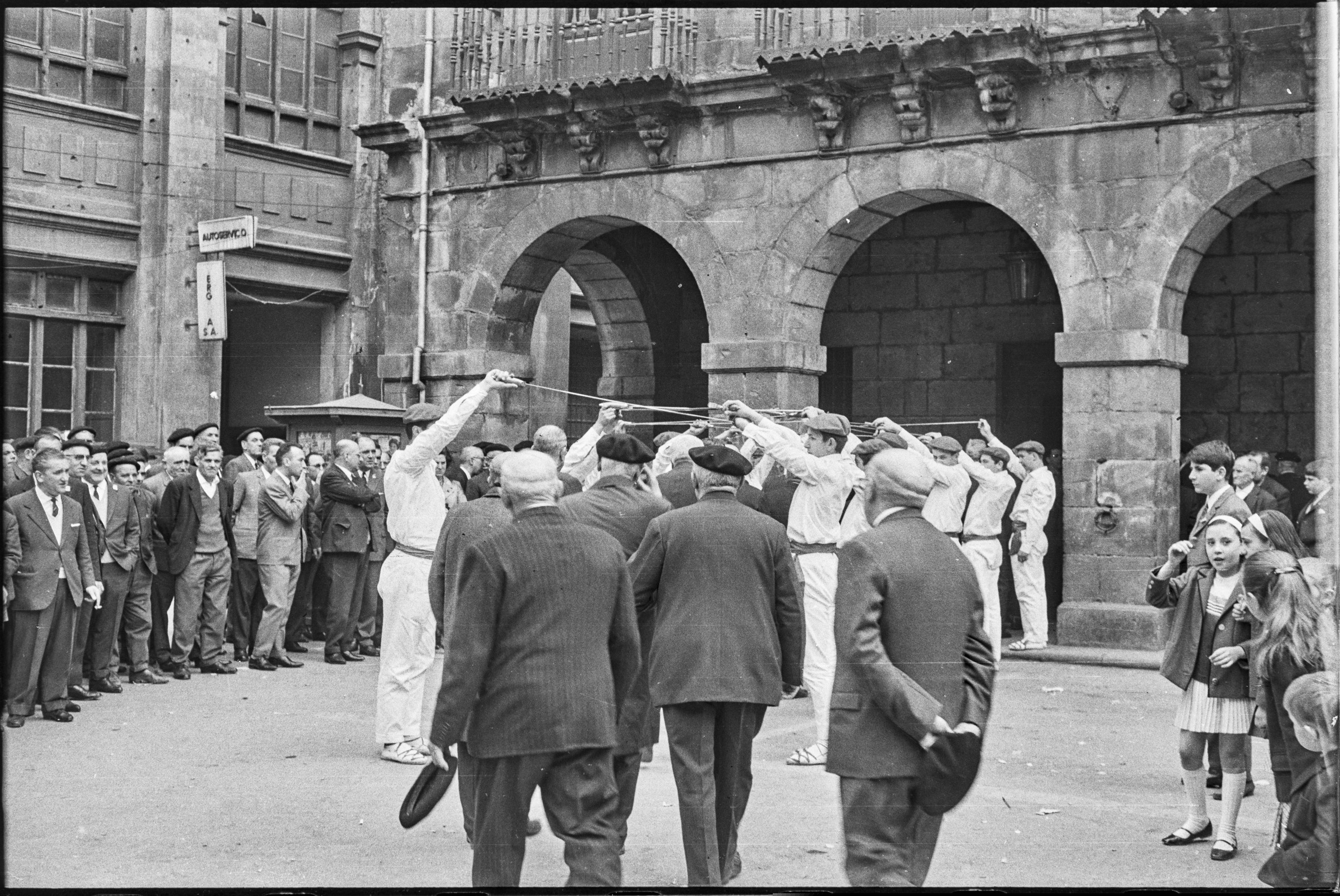 | Dantzariak San Martin plazan arkua egiten Udal Korporazioari. | Jubilados - Del 1 al 63 30-abril-1967 |