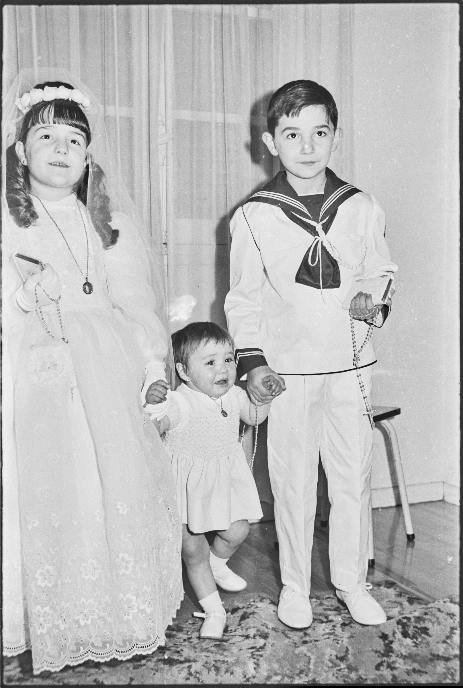 | Neska eta mutiko bat lehen jaunartzeko jantziekin | Comuniones 1968 |