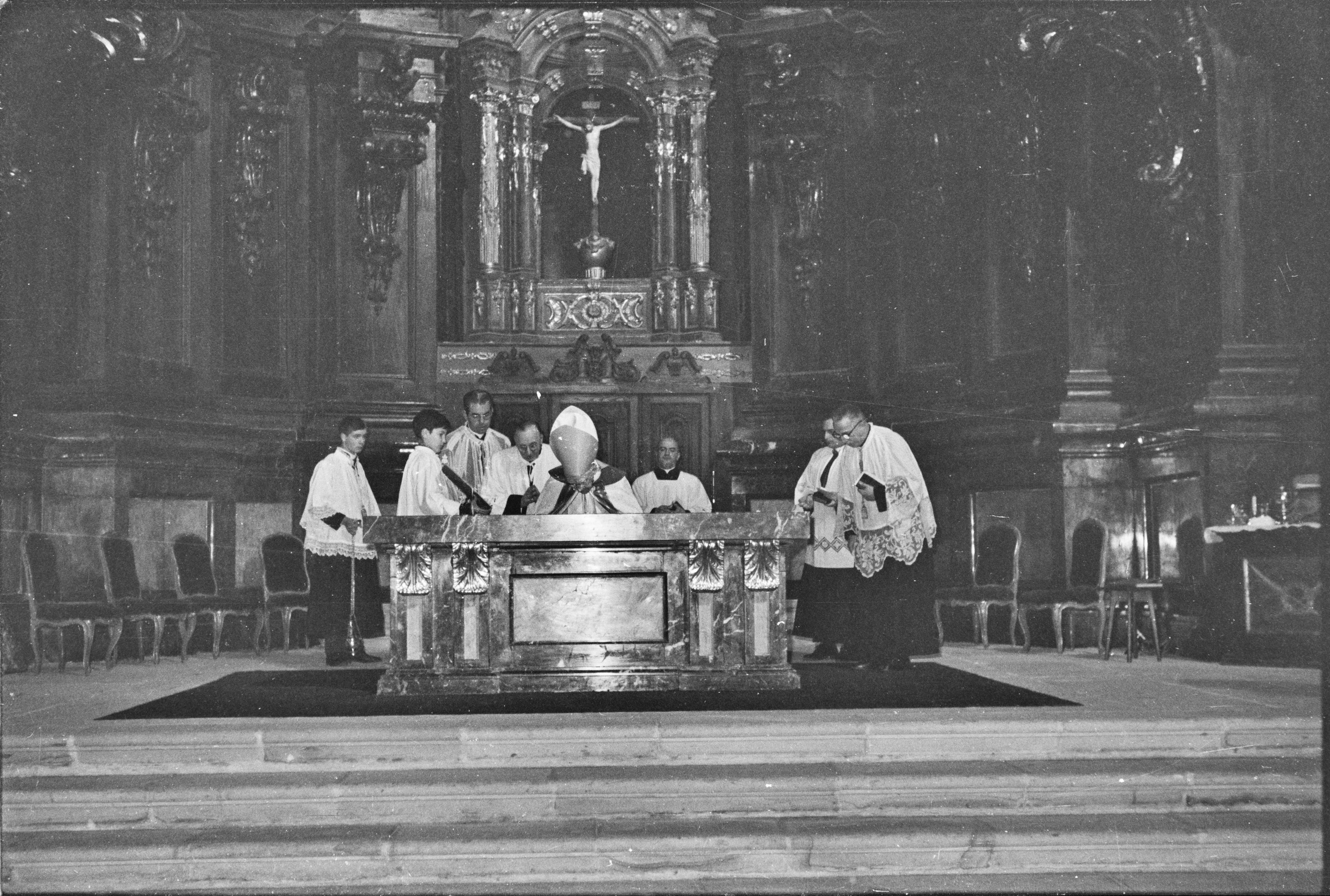 | Apaiz talde haundi bat meza ematen. | Obras altar Santa Marina - Bendición 4-febrero-1968 |