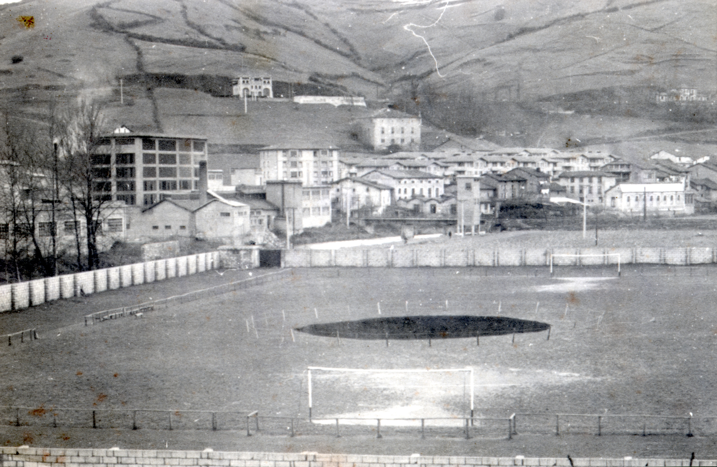 | Agorrosin futbol zelaia, erdian zuloa | "1955 Bergara Campo de Agorrosin Fotografo - Isidro Ecenarro" [ms. v.] |