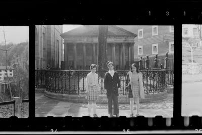 | Bizkaiarako txangoa: hiru neskatila, atzean Gernikako arbola eta juntetxea. | Excursion |