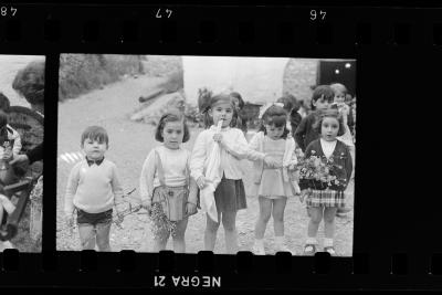 | Aranzadi ikastolako ikasleak San Martzialerako bidean | II Acampada Gaztetxos 26,27,28,29,30-IV-1971 |