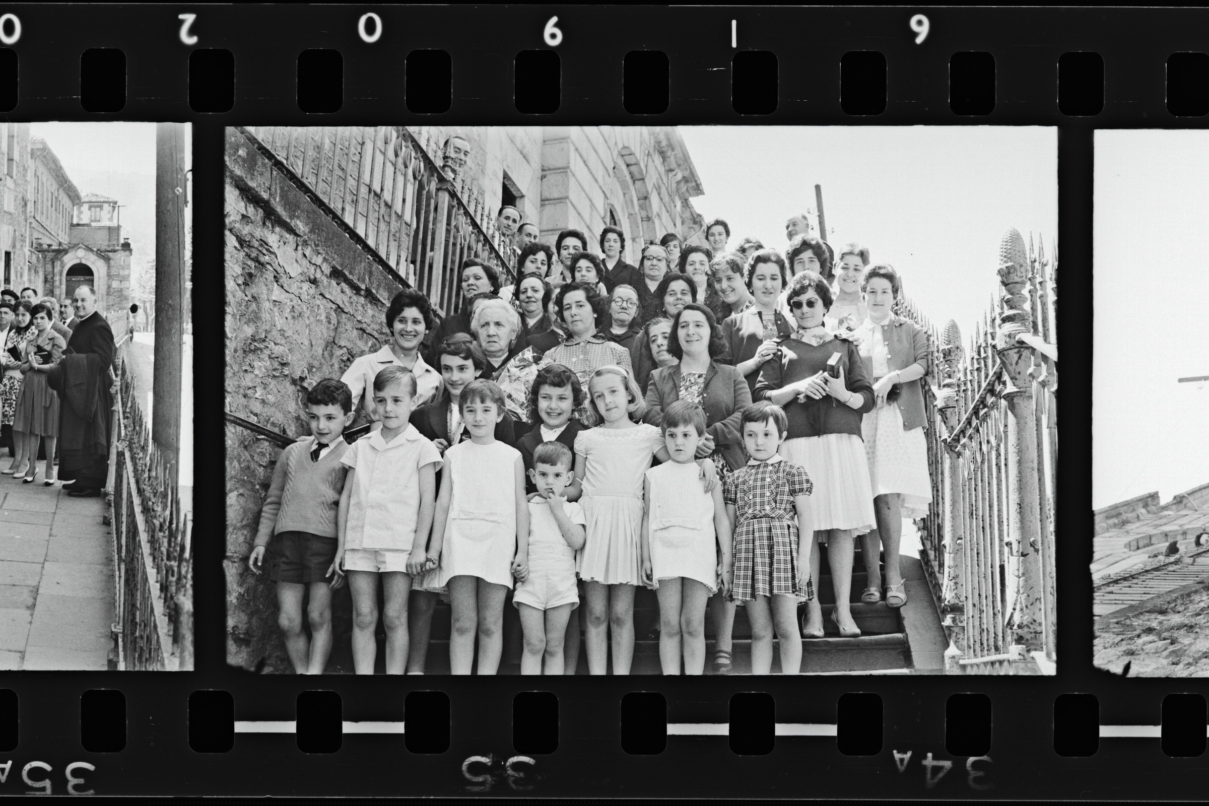 Otazua textil lantegiko 50. urteurreneko ospakizuna: Mariaren Lagundiko atrioan familia | Bodas de oro Textil Otazua Llegada Obispo 12-junio-1960 |
