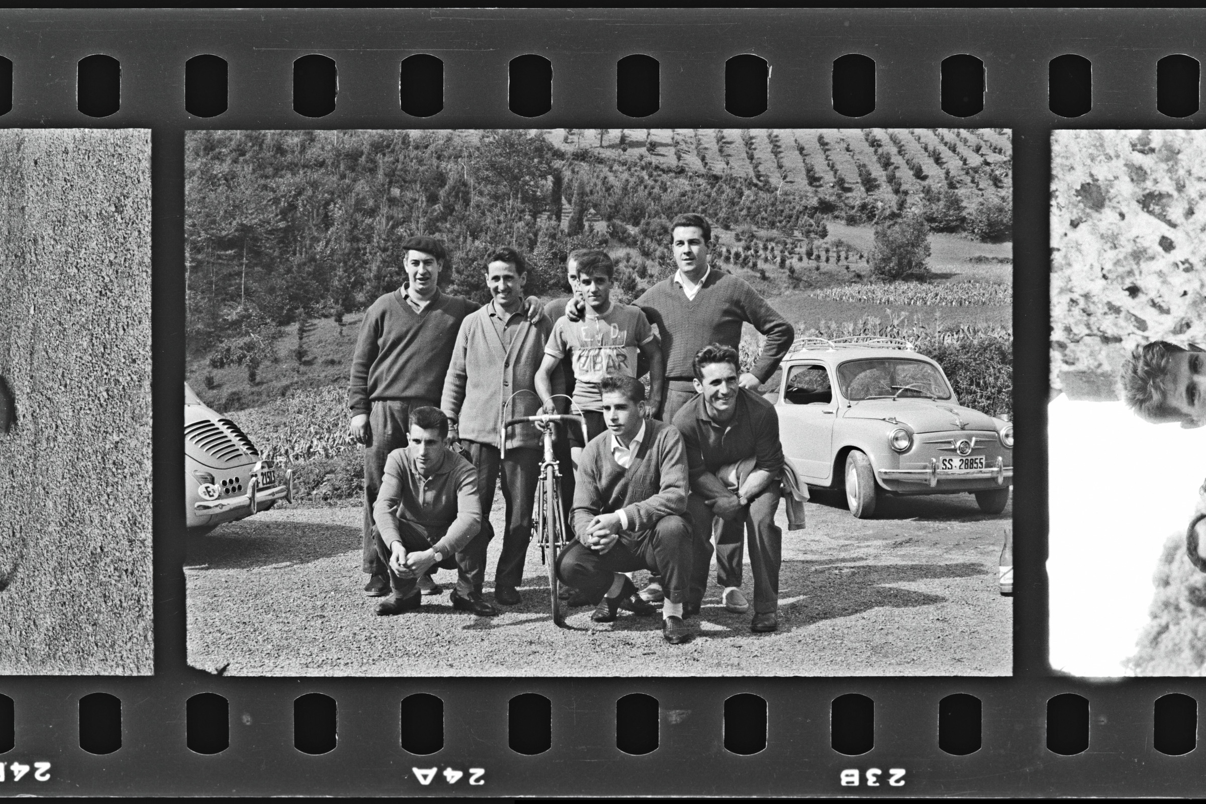 | Gizon talde erretratua; erdian txirrindularia bizikletarekin | Ciclismo. Primera Subida a Uzarraga. Vencedor: Elorza |