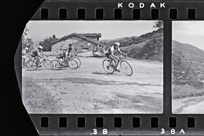 | San Antonioko jaietako txirrindulari lasterketa: txirrindulariak mendatea igotzen | Ciclismo. San Antonio. Vencedor: Antonio Barrutia |