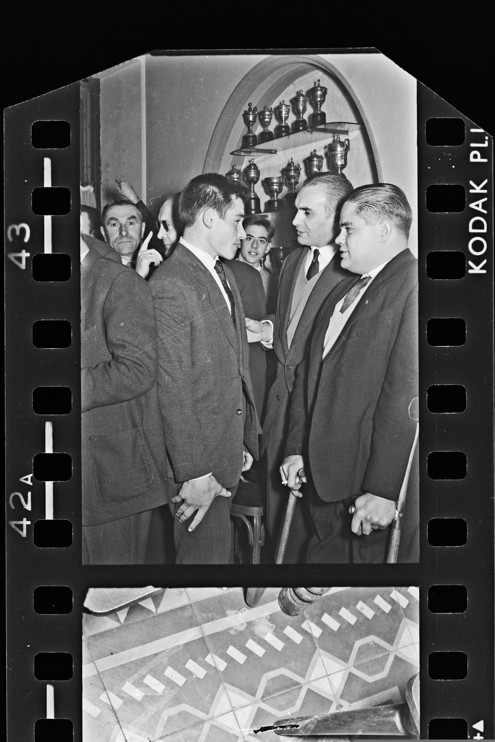 | Gizonak hizketan, "Club Deportivo"-an; atzean kopak ikus daitezke | Ciclismo. Record de los 100 km. San Sebastián - Ormaiztegui - San Sebastián. Vencedor: Jesús Aranzabal |
