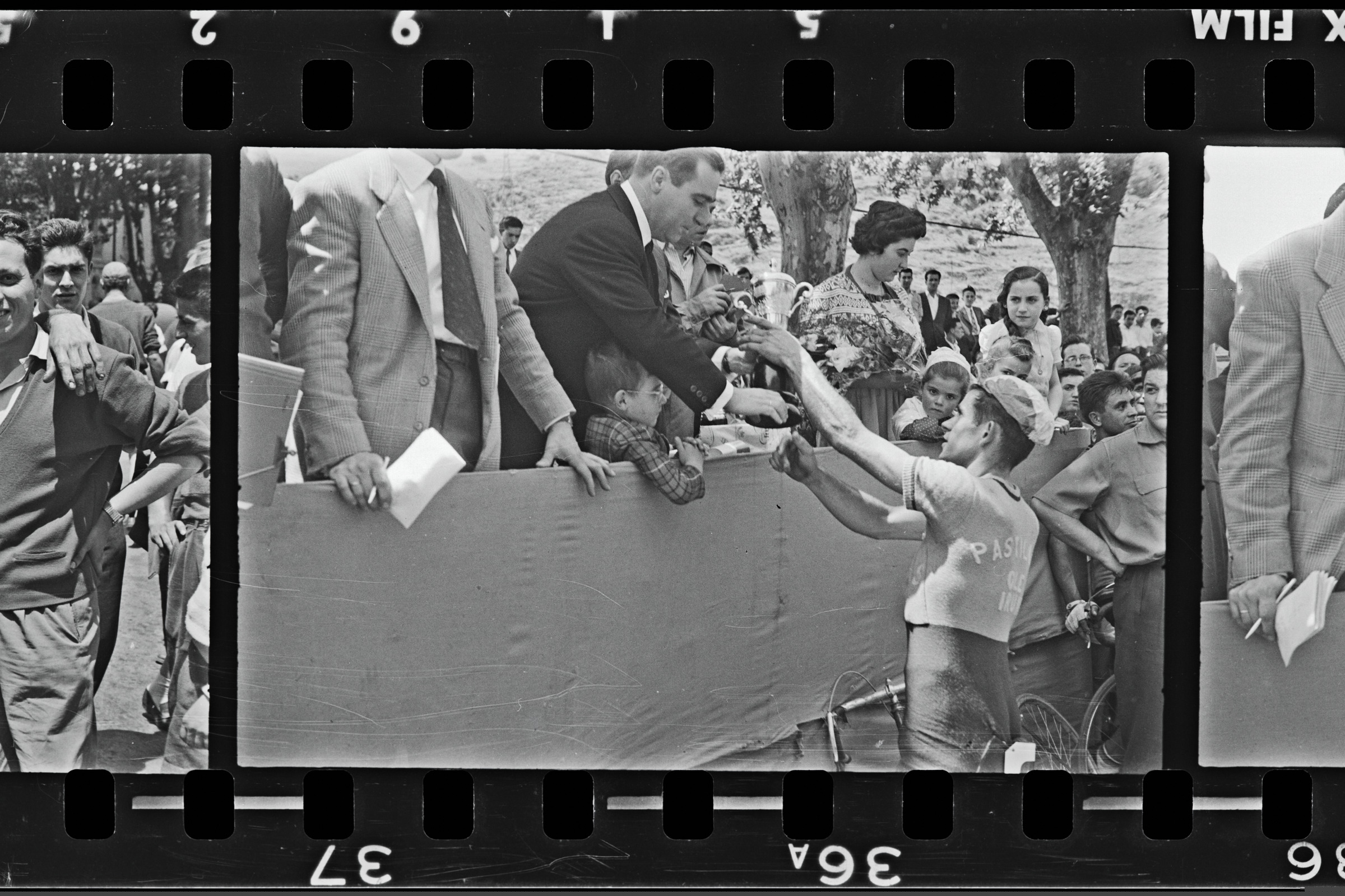 | Pastillas Ole taldeko txirrindularia Alkatearen eskutik kopa jasotzen | Ciclismo. Campeonato vasco navarro de Montaña |