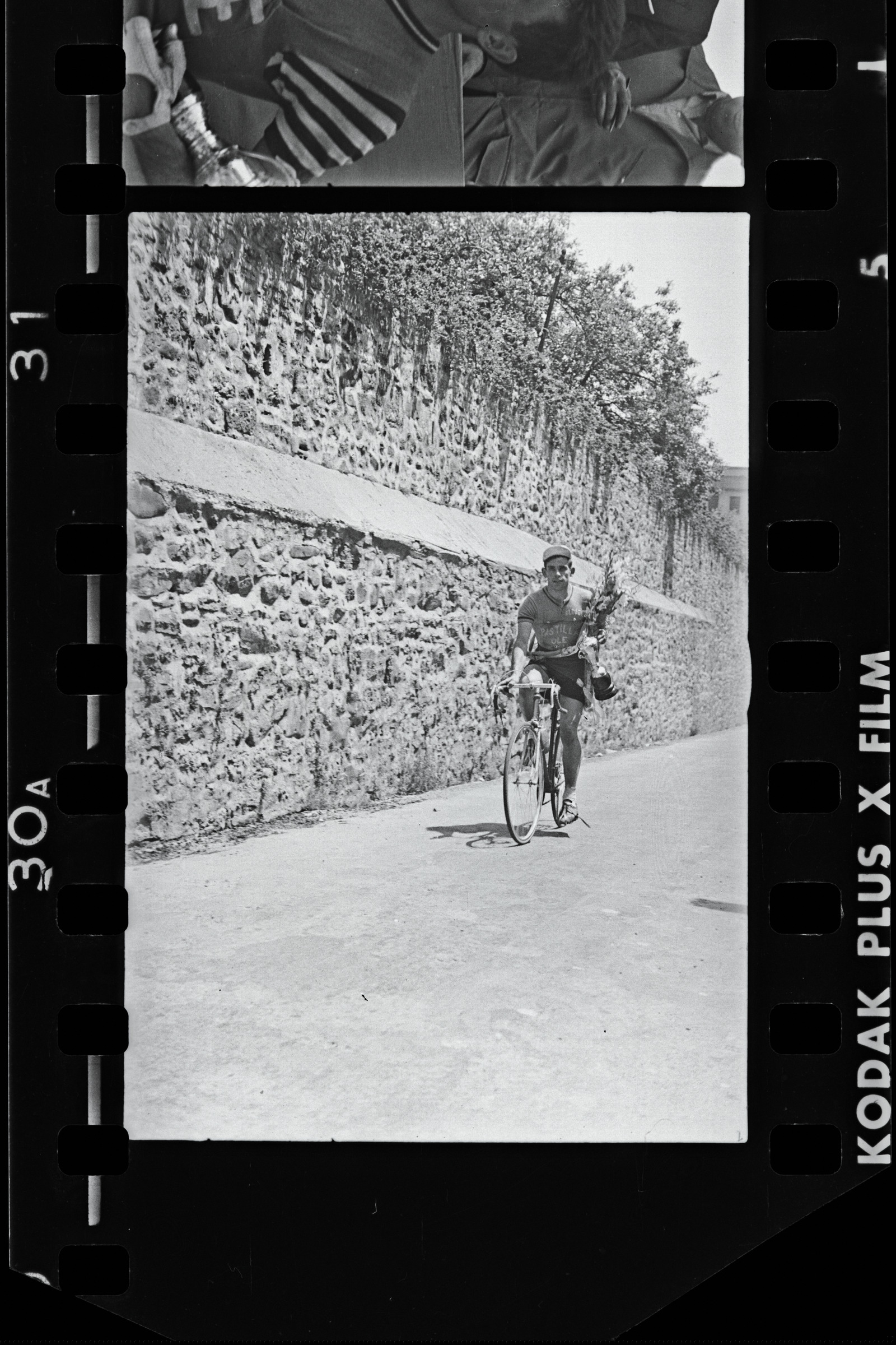 | Txirrindularia banda eta loresortarekin ohorezko ibilbidea egiten. | Ciclismo. Campeonato vasco navarro de Montaña |
