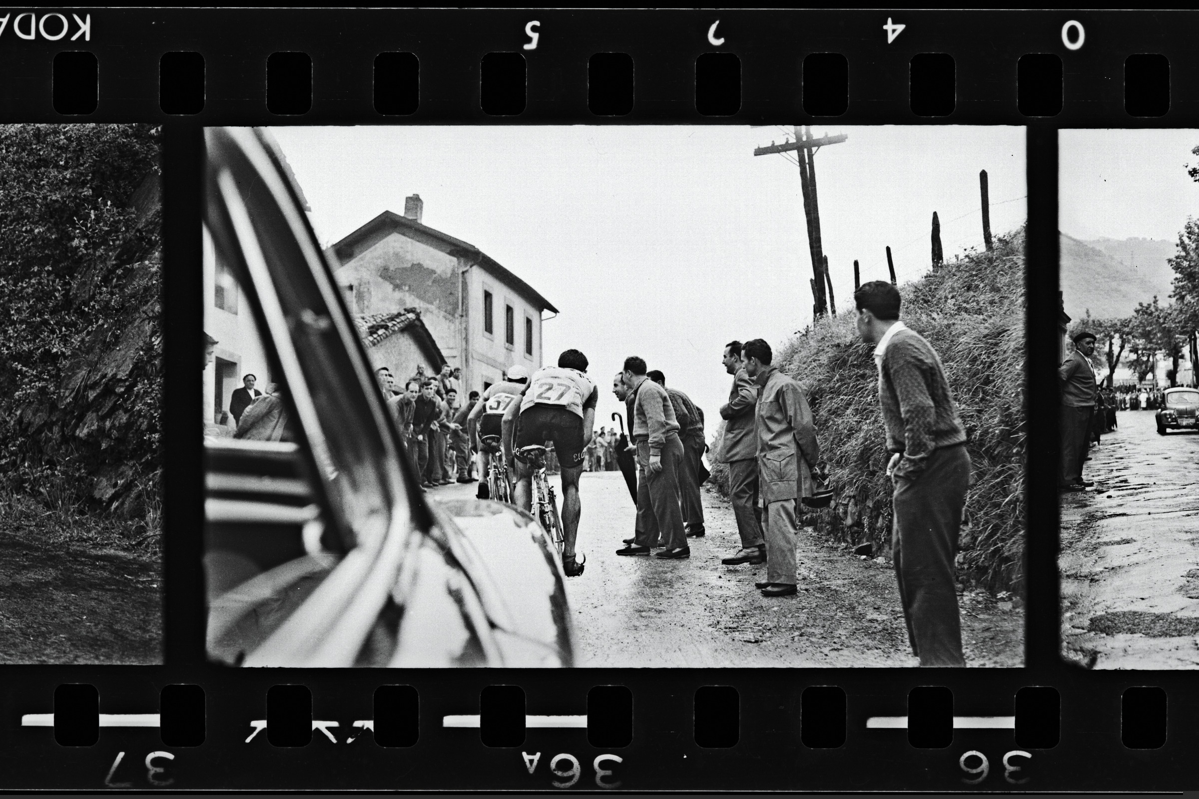| Txirrindulariak Deskargako mendatea igotzen Argazkia kotxe batetik hartuta dago | Ciclismo. Pascuas de Pentecostés. Vencedor: Eusebio Velez |
