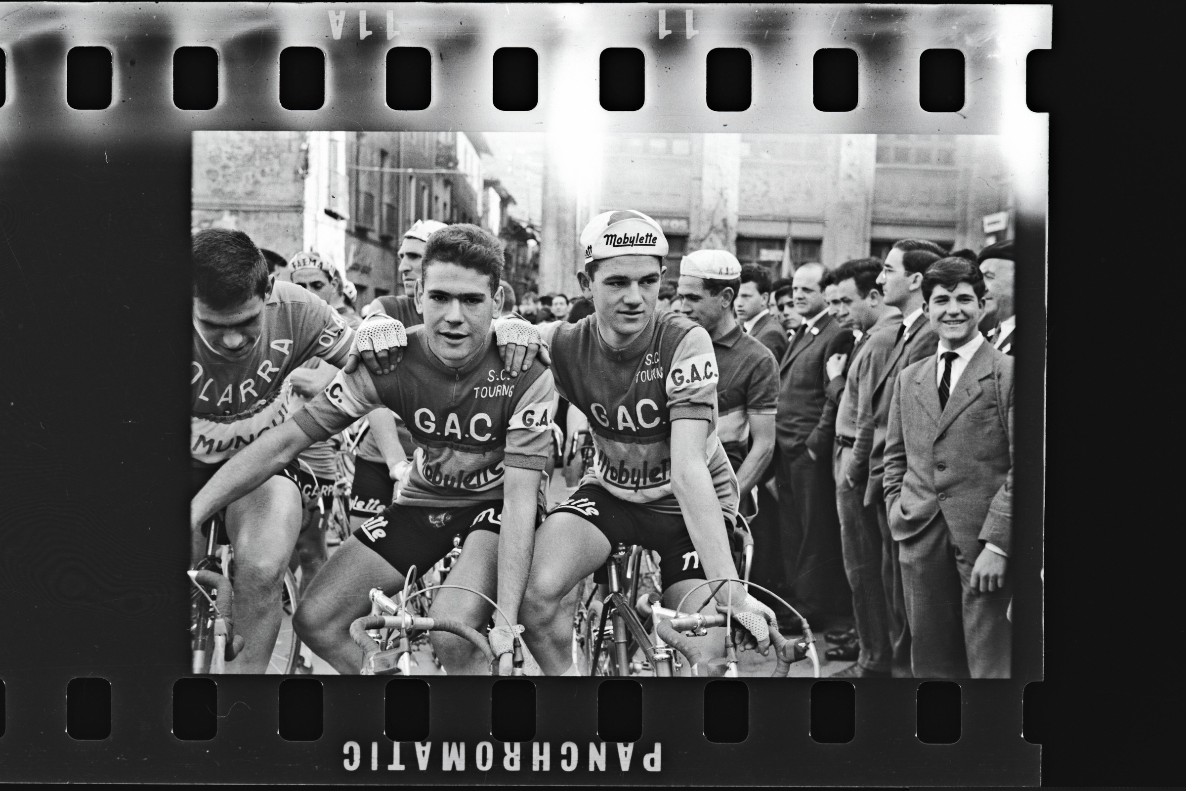 | G.A.C. taldeko txirrindulariak lasterketaren irteeraren zain San Martin plazan | Ciclismo. III Criterium ciclista Algodonera de San Antonio. Vencedor: Perurena |