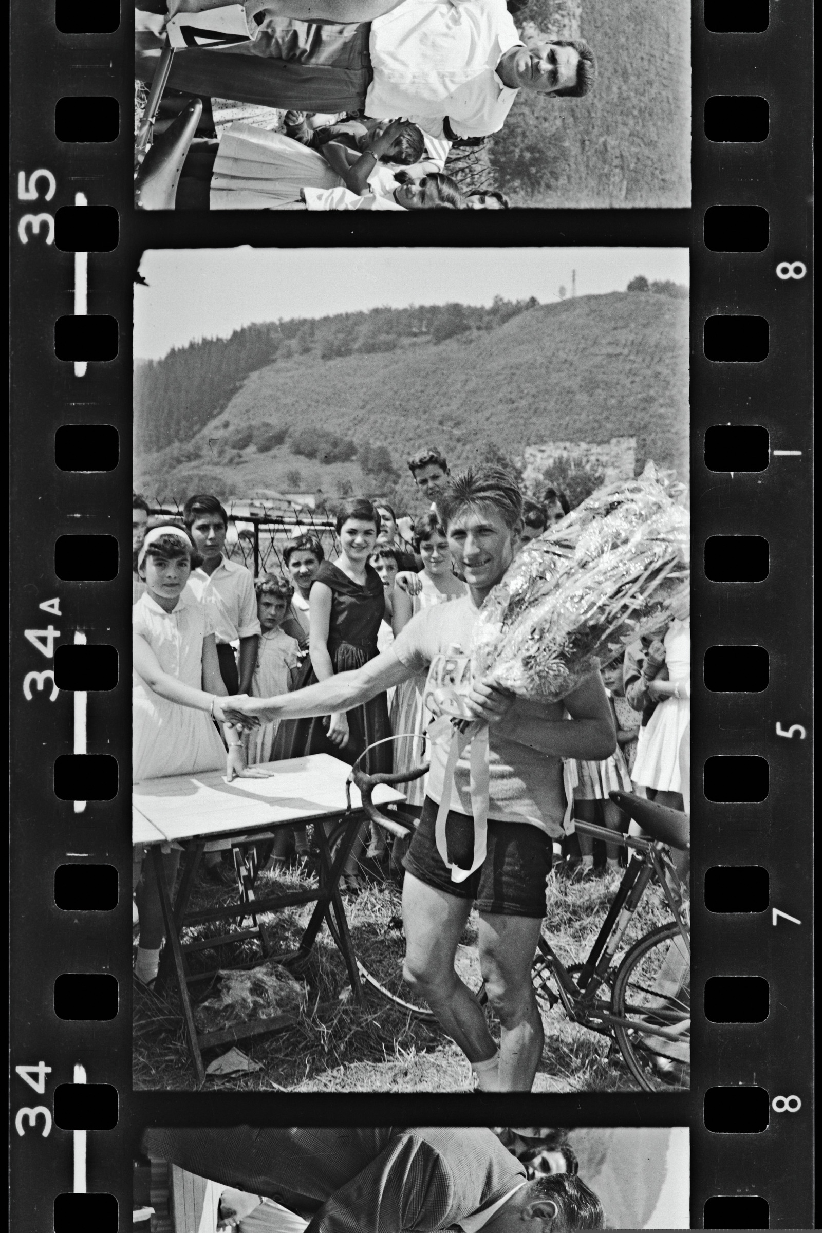 | Txirrindularia loresorta jasotzen neska baten eskutik | Ciclismo San Lorenzo. Vencedor: |