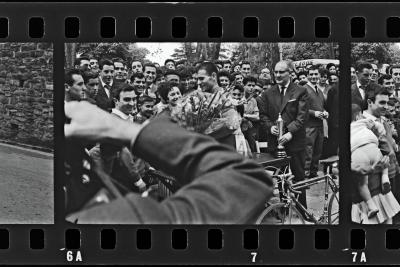 Txirrindularia lasterketaren sari ematea: irabazlea loresorta jasotzen | Ciclismo XXVII Premio Pentecostés. Primera etapa. Vencedor: Lasa |