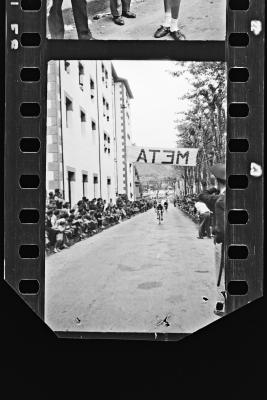 Pentekostes jaietako txirrindulari lasterketako helmuga Espoloian: txirrindulariak helmugara heltzen | Ciclismo Pascuas de Pentecostés. Vencedor: Aspuru |