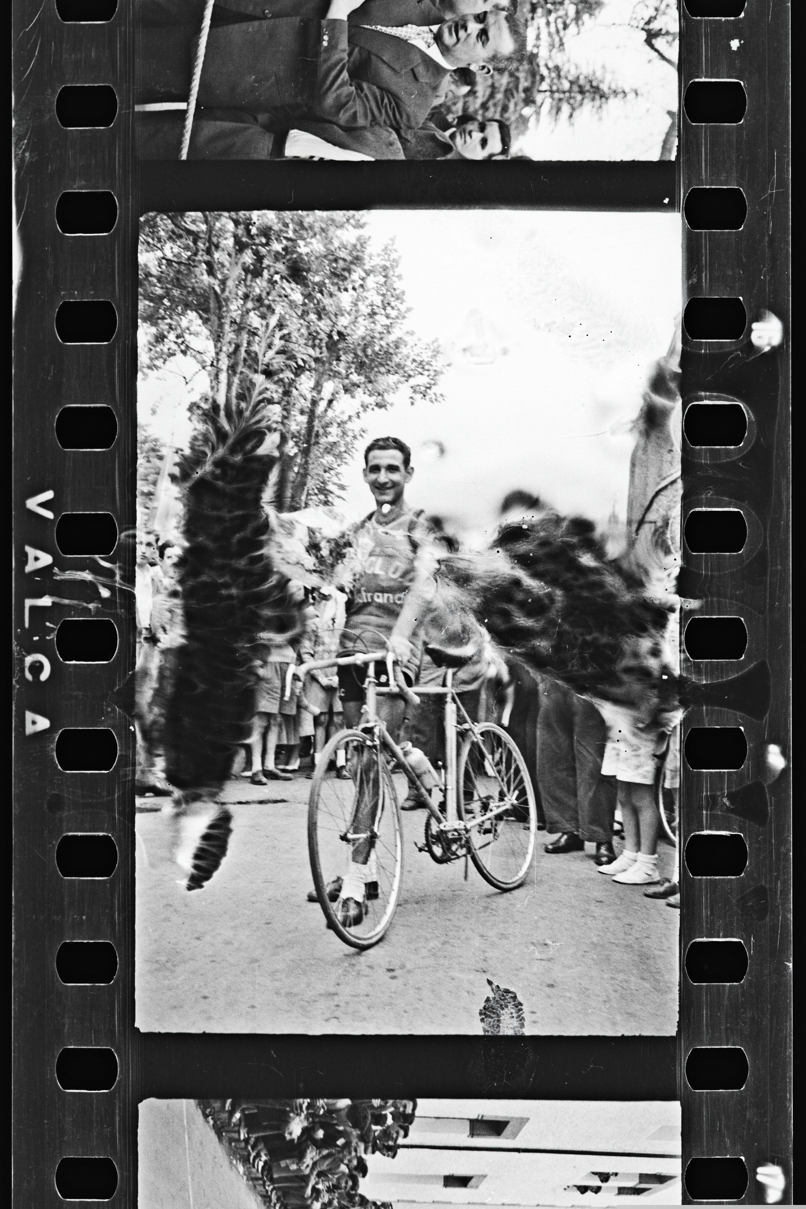 Txirrindularia loresorta eta koparekin helmugan. | Ciclismo Pascuas de Pentecostés. Vencedor: Aspuru |