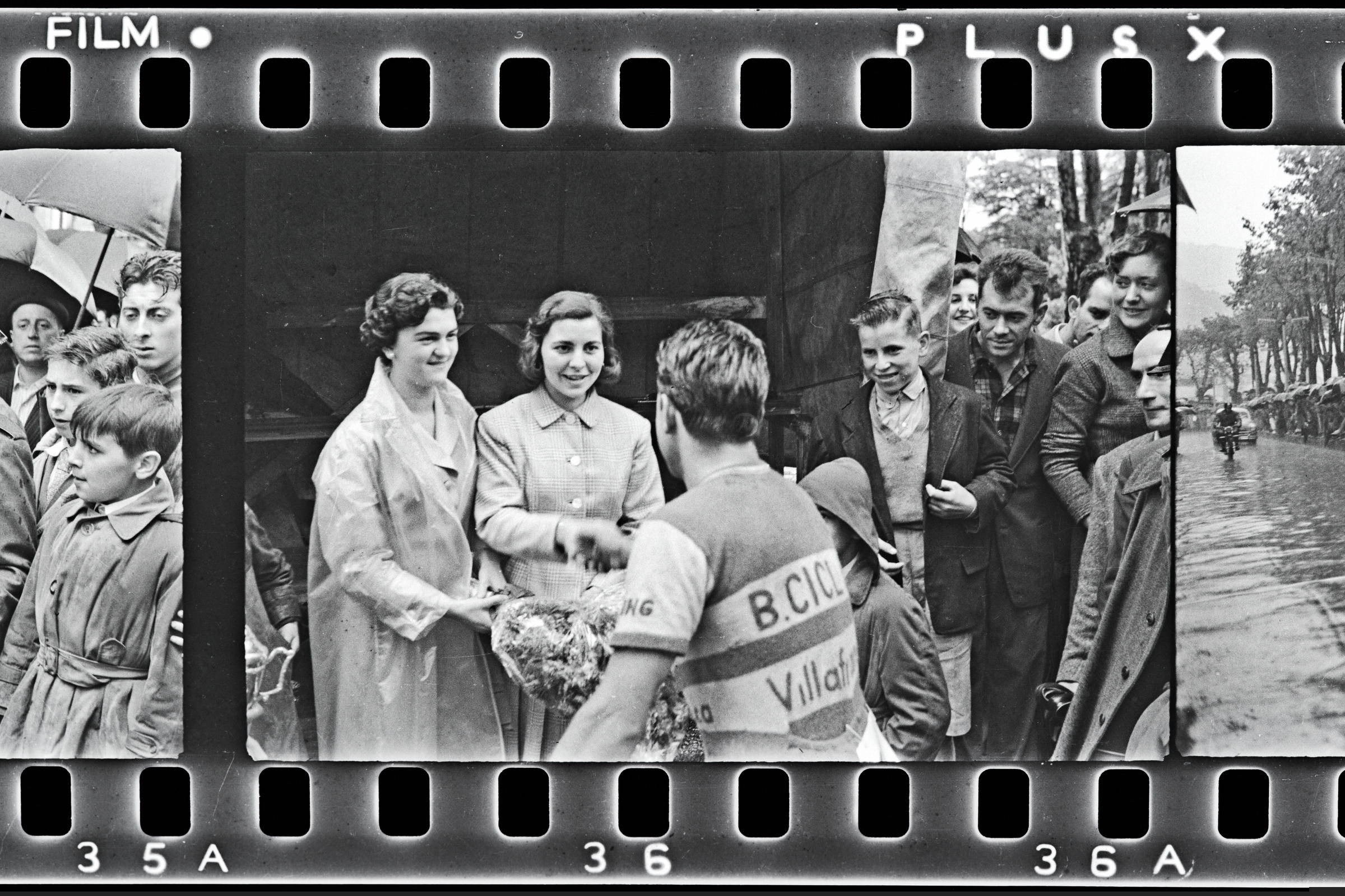 | Txirrindularia loresorta jasotzen bi neskengandik | Ciclismo Pascuas de Pentecostés. Vencedor: |