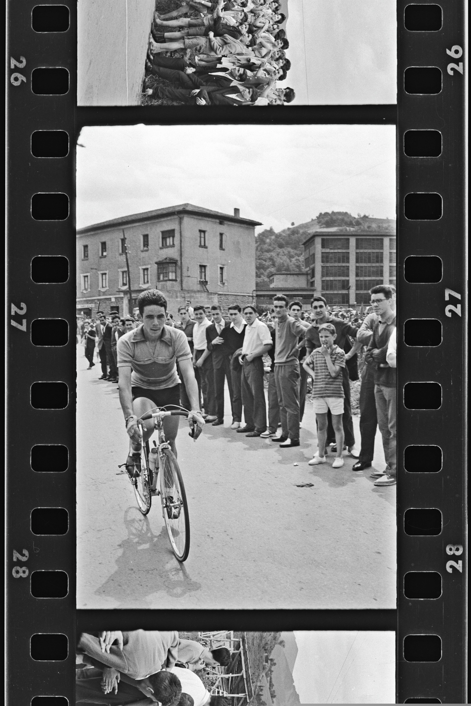 | Txirrindularia bizikletan jende artean : Bigarren planoan ikusten den etxe Toki alai da | Ciclismo San Lorenzo. Vencedor: |