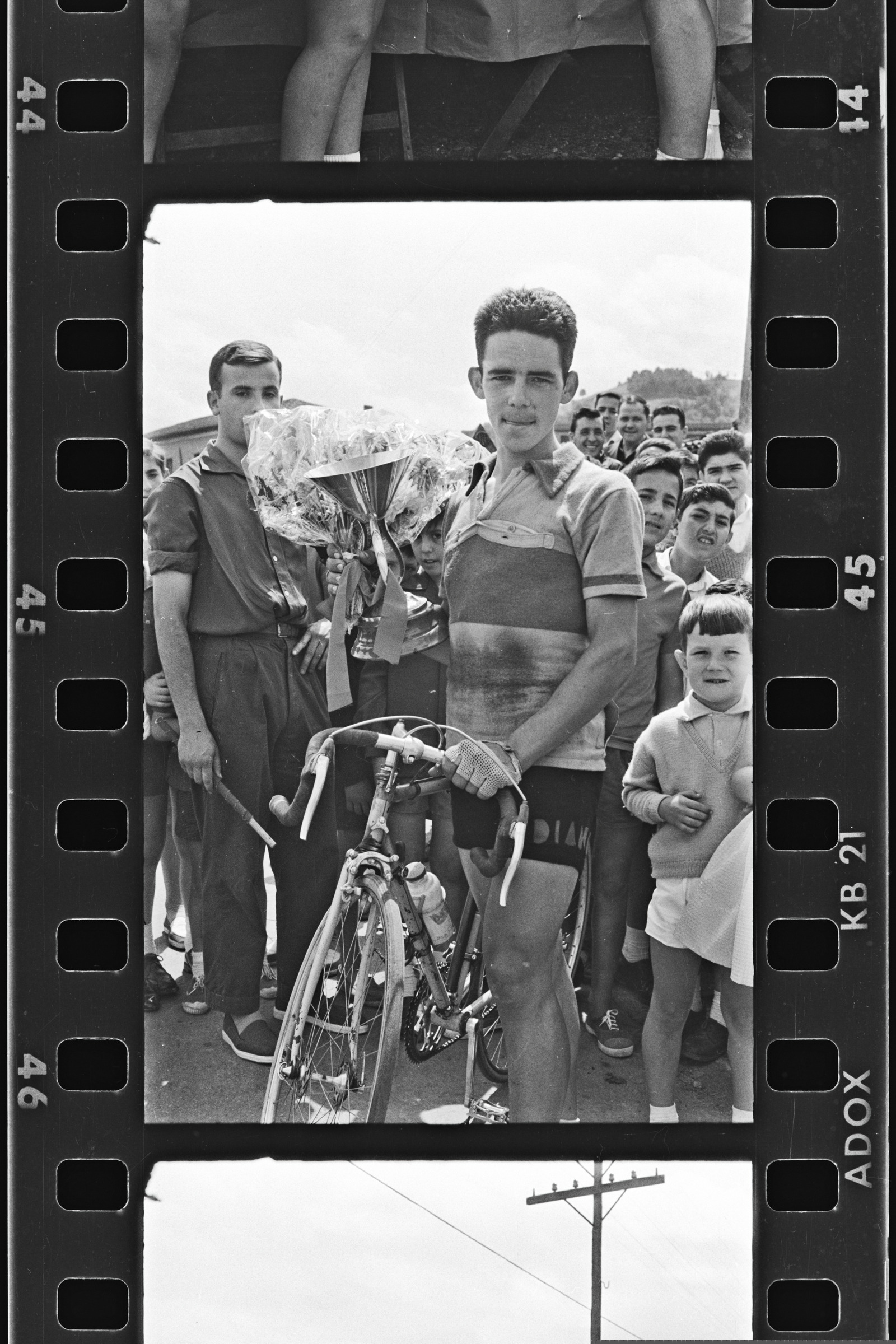 Txirrindularia kopa eta loresortarekin jendez inguratuta | Ciclismo San Lorenzo. Vencedor: |