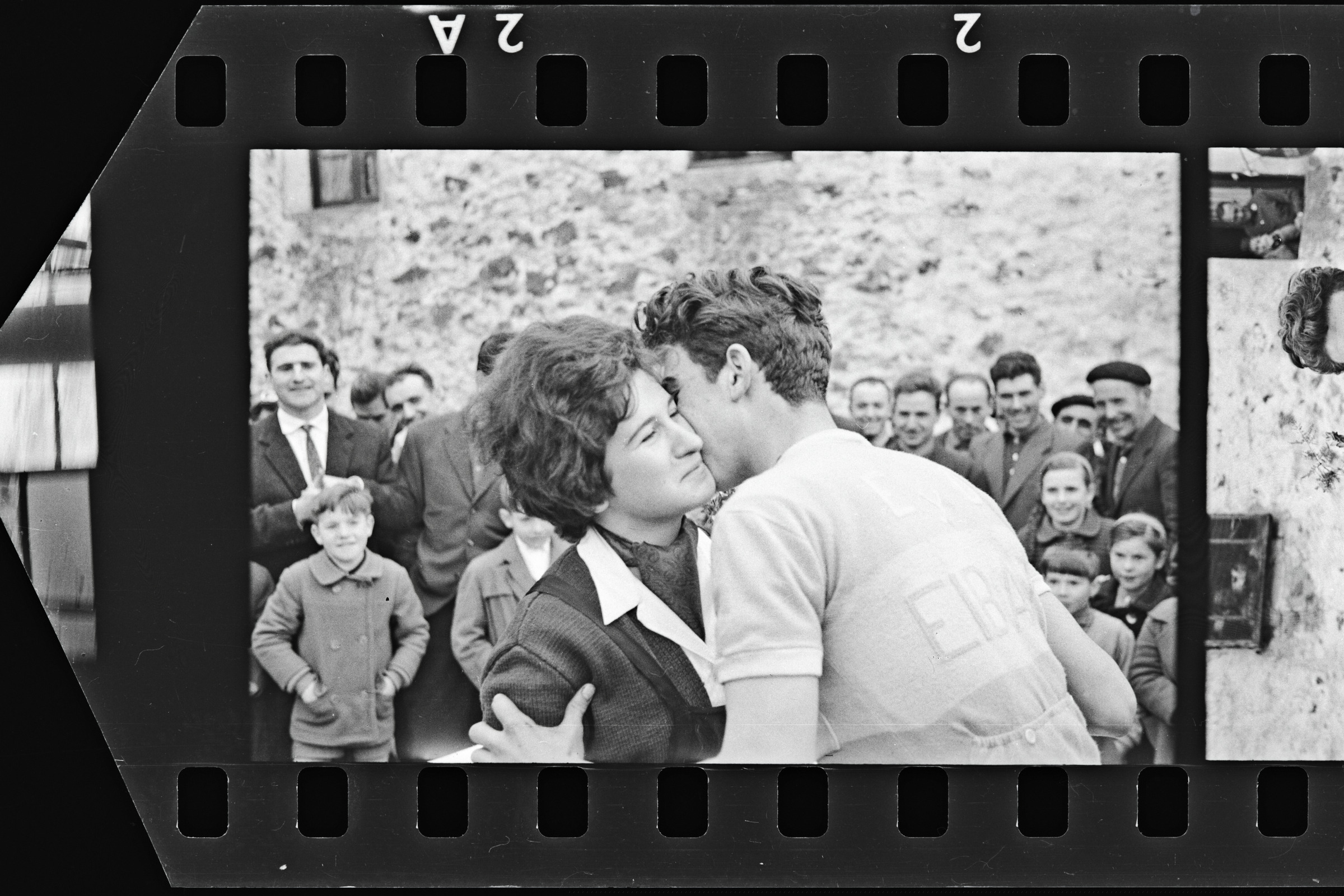 Txirrindularia neska besarkatzen | Ciclismo. Anzuola. Segunda subida a Uzarraga. Vencedor: Malvar |