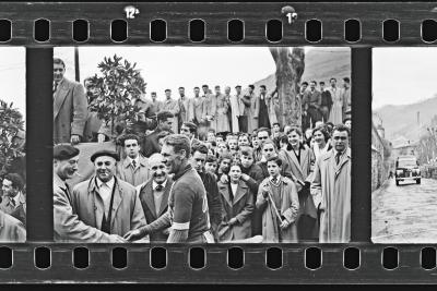 | Gamma taldeko txirrindularia Espoloiko helmugan jendearen zorionak jasotzen | Ciclismo San Antonio. Vencedor: Antonio Barrutia |