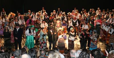 | 2007ko aratuzteetako kontzertuaren amaieran, Musikariak eta abeslariak oholtzaren gainean zutik. |