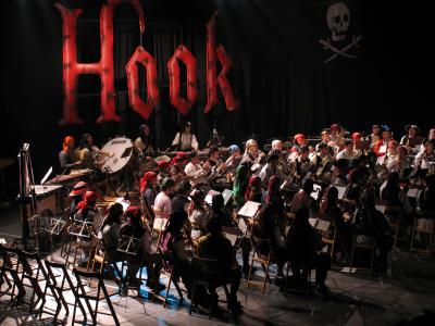 | 2005ko aratuzteetako kontzertua, Hook filman oinarrituta. Musikariak pirataz jantzita daude. |