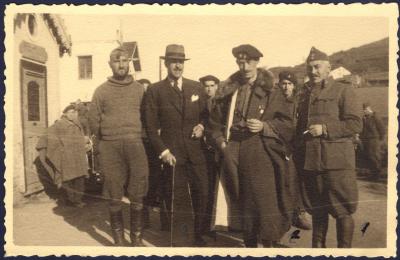 Gizon talde bat. | Nº1 El marqués de Goicoerrotea, comandante de artillería. Nº2 D. Agustín Tellería, Jefe Provincial de Guipúzcoa de FET de las JONS, y de la Junta Carlista de Guerra. Nº3 Luis Ruíz de la Prada; alcalde de Vergara, Diputado Provincial de Guipúzcoa. En el puesto de mando de artillería, del Comandante Goicoerrotea, en el frente de guerra de Vergara, en marzo de 1937 |