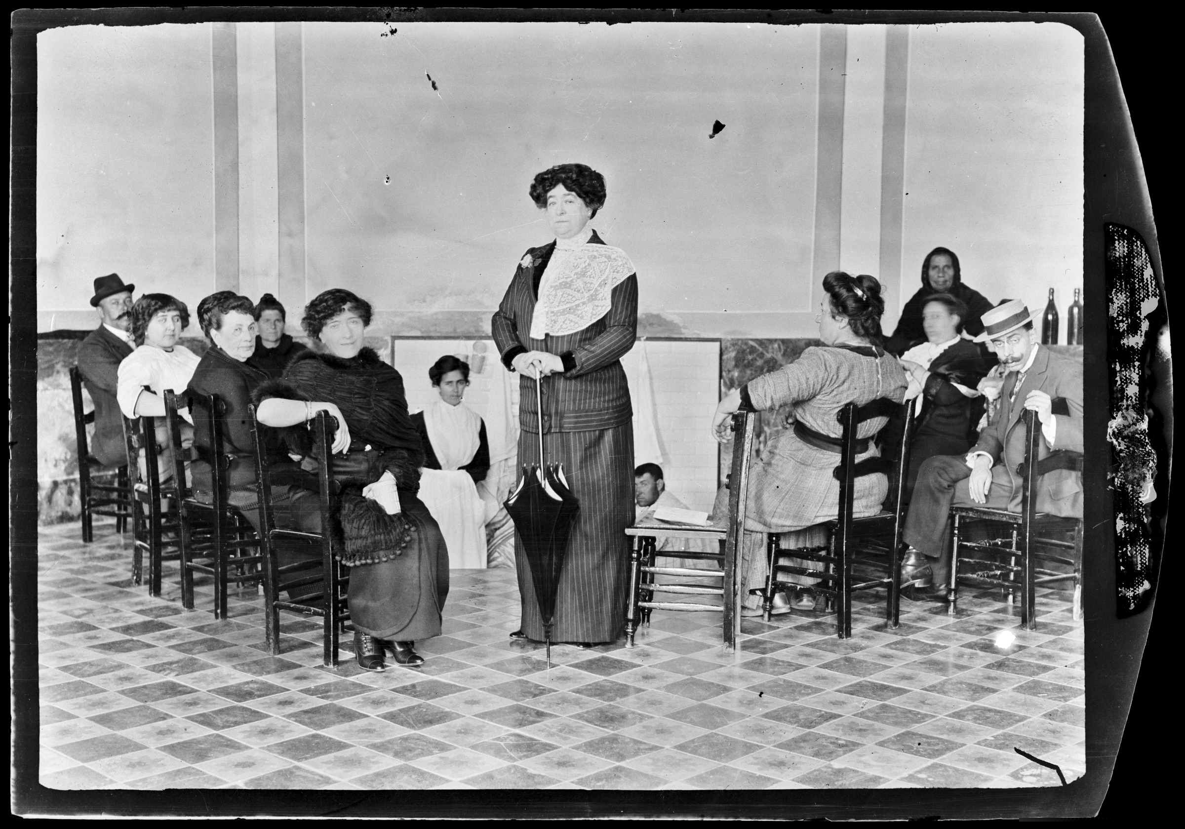 | Talde bat egongela batean. |