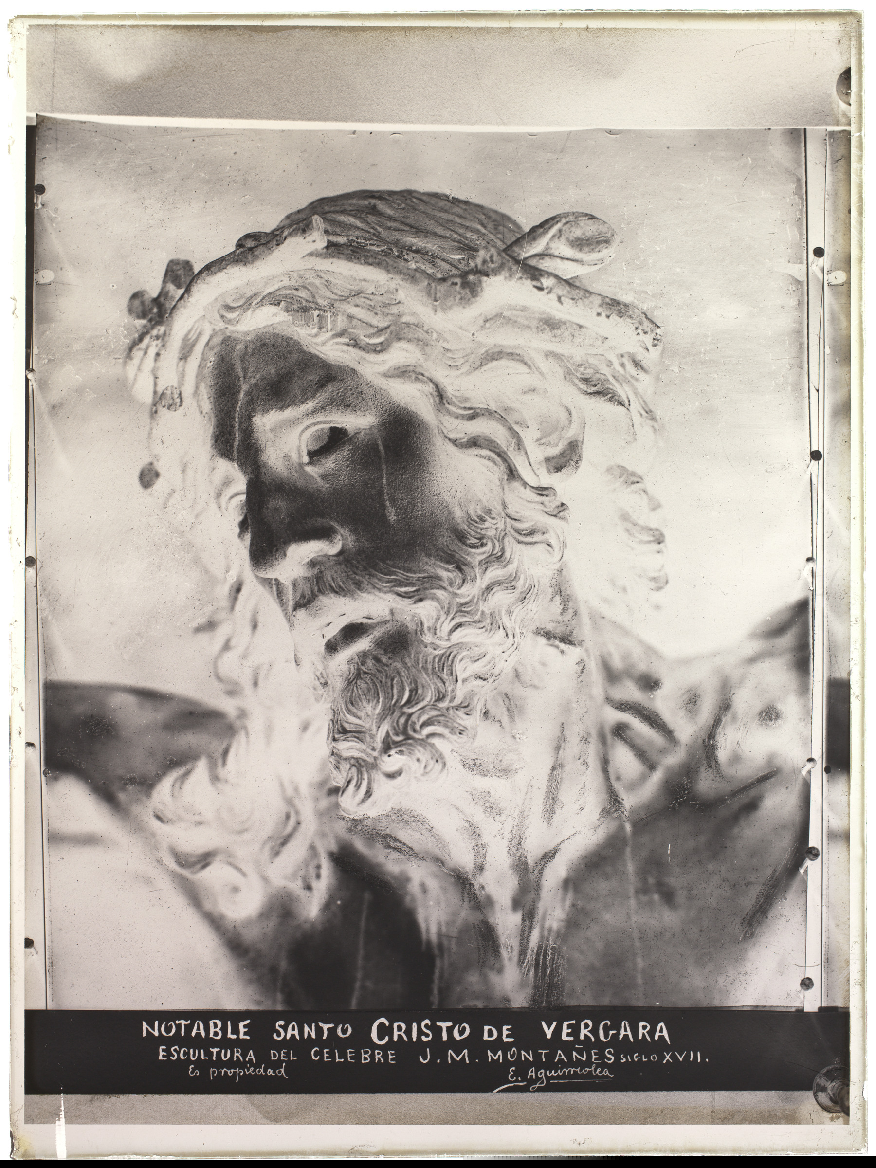 | Kristo Santuaren irudia (aurpegia) | Notable Santo Cristo de Vergara. Escultura del célebre J.M. Montañes. Siglo XVIII. Es propiedad E. Aguirreolea. [m.s.v.] |