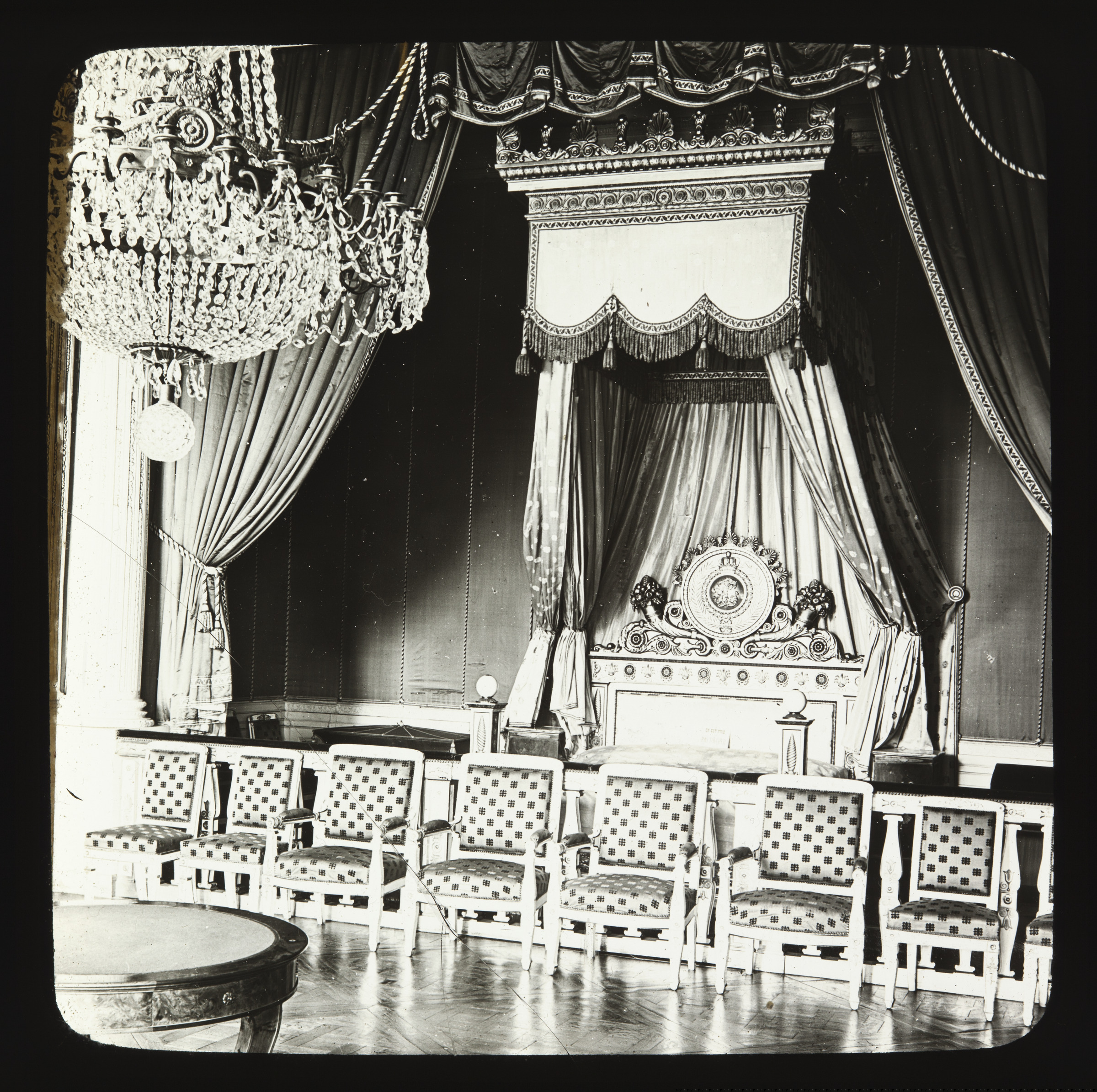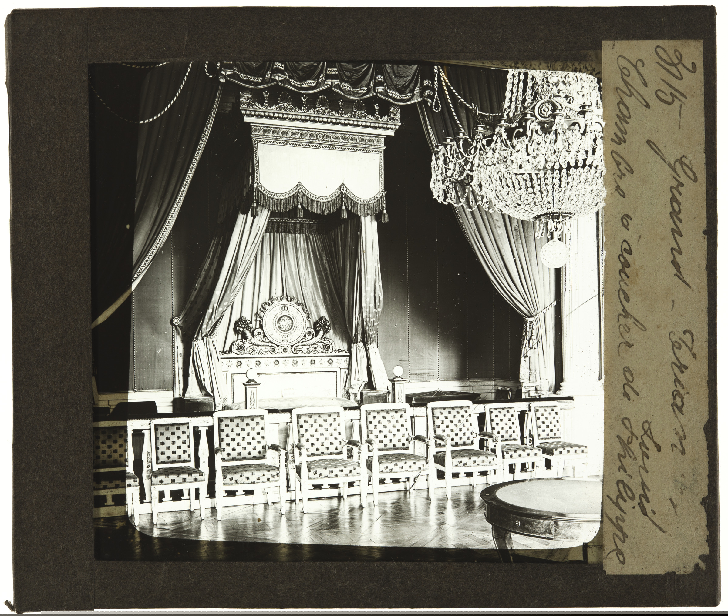 Grand Trianongo Luis Feliperen egongela. | 3115.Grand Trianón. Chambre a coucher de Louis Philype. [m.s.v.]. Vues et sujets divers pour Appareils de projection. J & A MOLTENI; PARIS Appareils de projection Fantasmagories Polyoramas [imp.r]. |