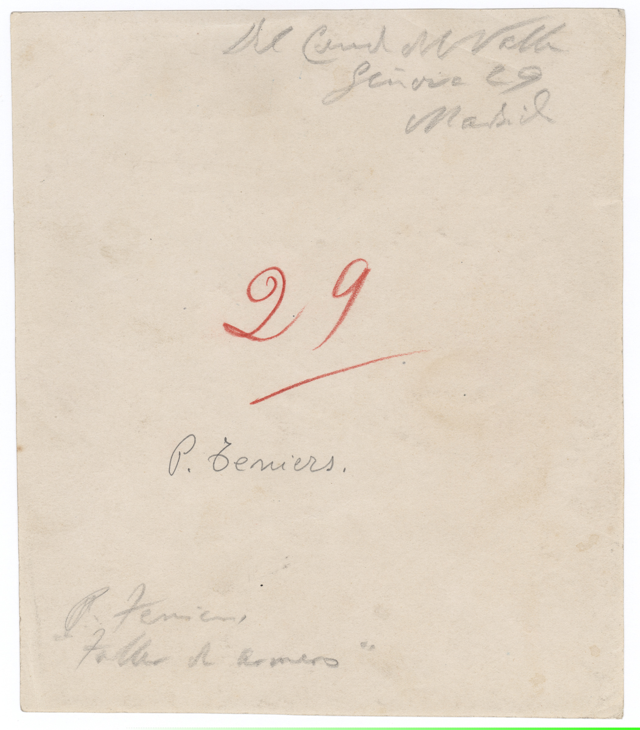 Valleko kondeak Madrilgo Genovako etxean zuen P.Teniersen "Taller de armero" izeneko koadroa. | Del Conde del Valle Génova 29 Madrid. 29. P. Teniers "Taller de armero". [m.s.v.] |