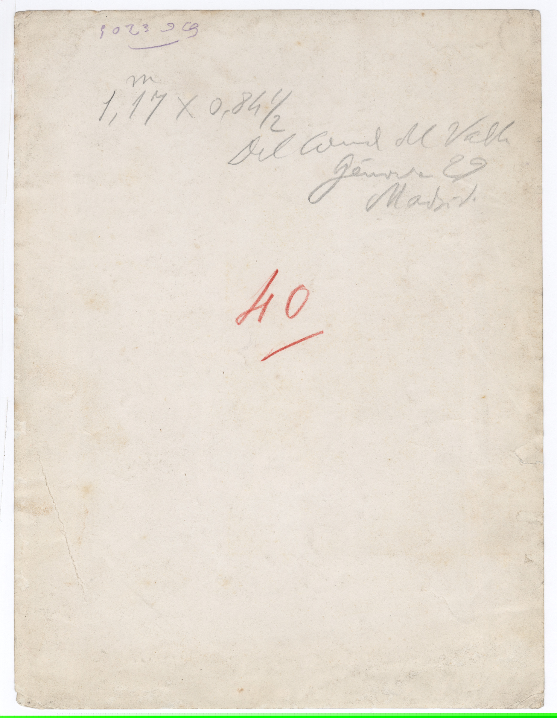 | Valleko kondeak Madrilgo Genovako etxean zuen koadroa. | Del Conde del Valle, Génova 29 Madrid. 40. 1,17x0,84 m. [m.s.v.] |