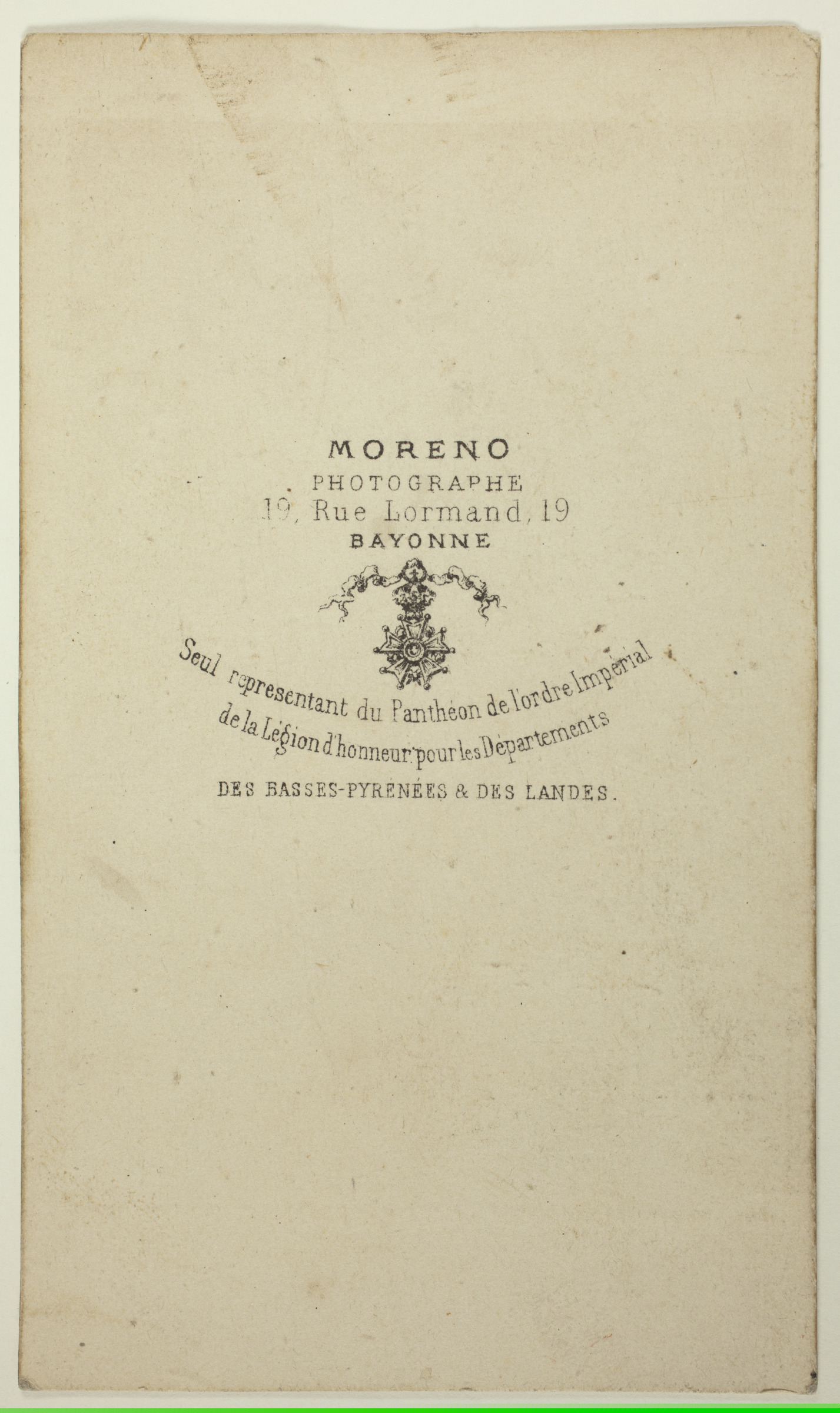| Gizon baten erretratua | Mr. & Mme. Moreno, Phot. [imp. r.]; Moreno Photographe, 19, rue Lormand, 19 Bayonne [imp. v.] |