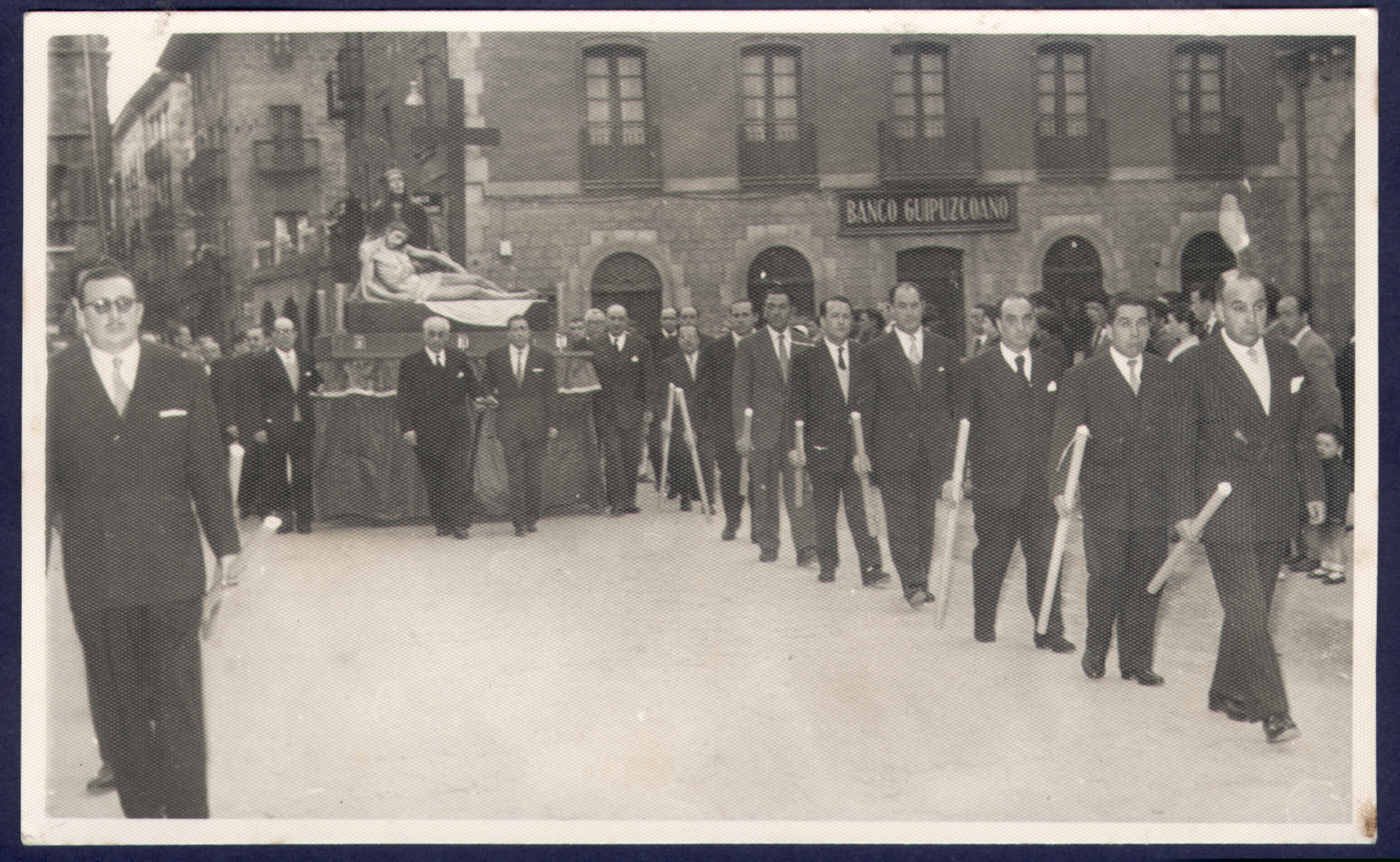 | Lorentzo Askasibarren Pietatearen prozesioa San Martin plazatik Barrenkaleruntz | Foto: Jáuregui, Vergara [imp.v.] |