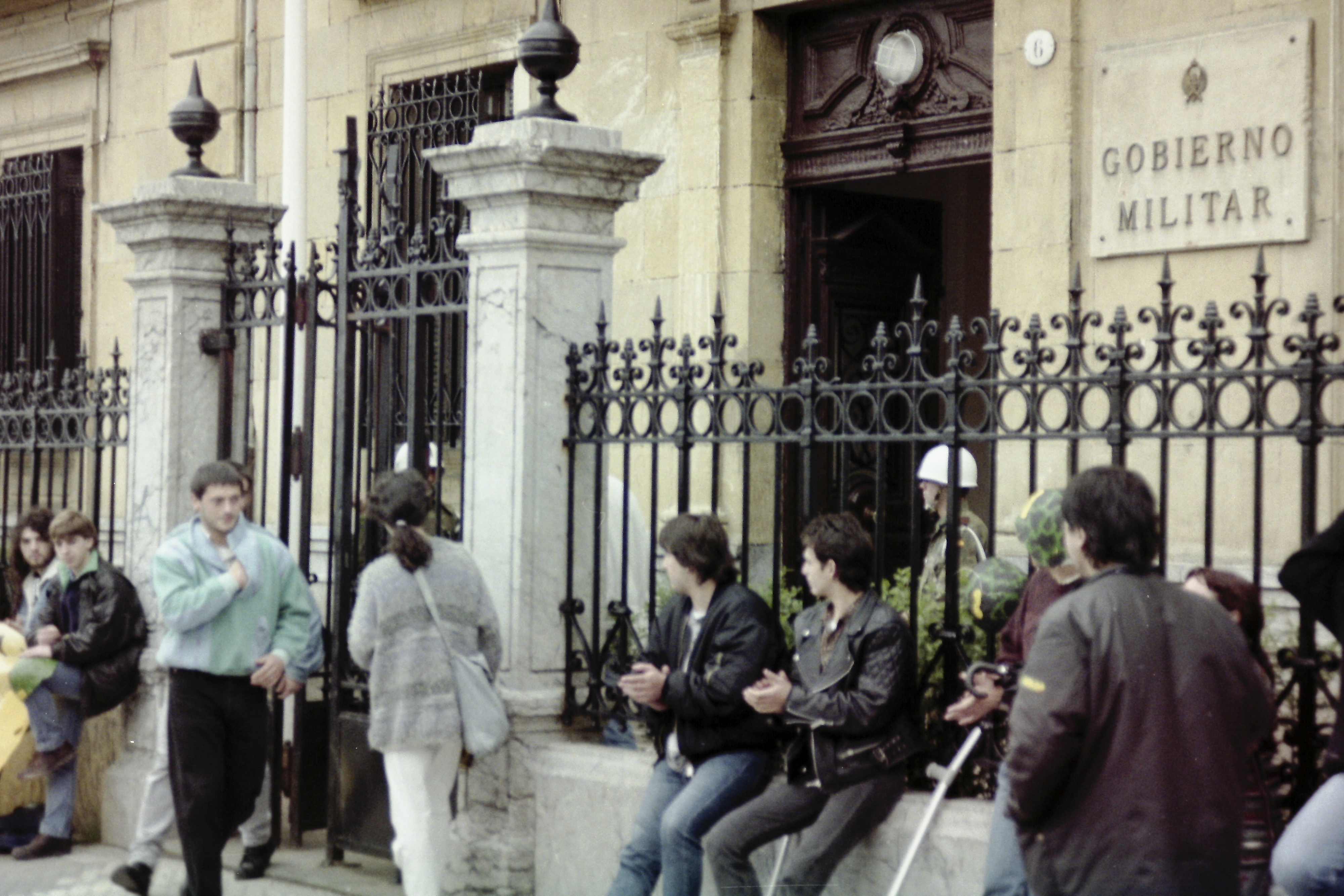| Donostiako Gobernu Militarraren egoitzaren aurrean egindako manifestaldia insumisioaren aldekoa |