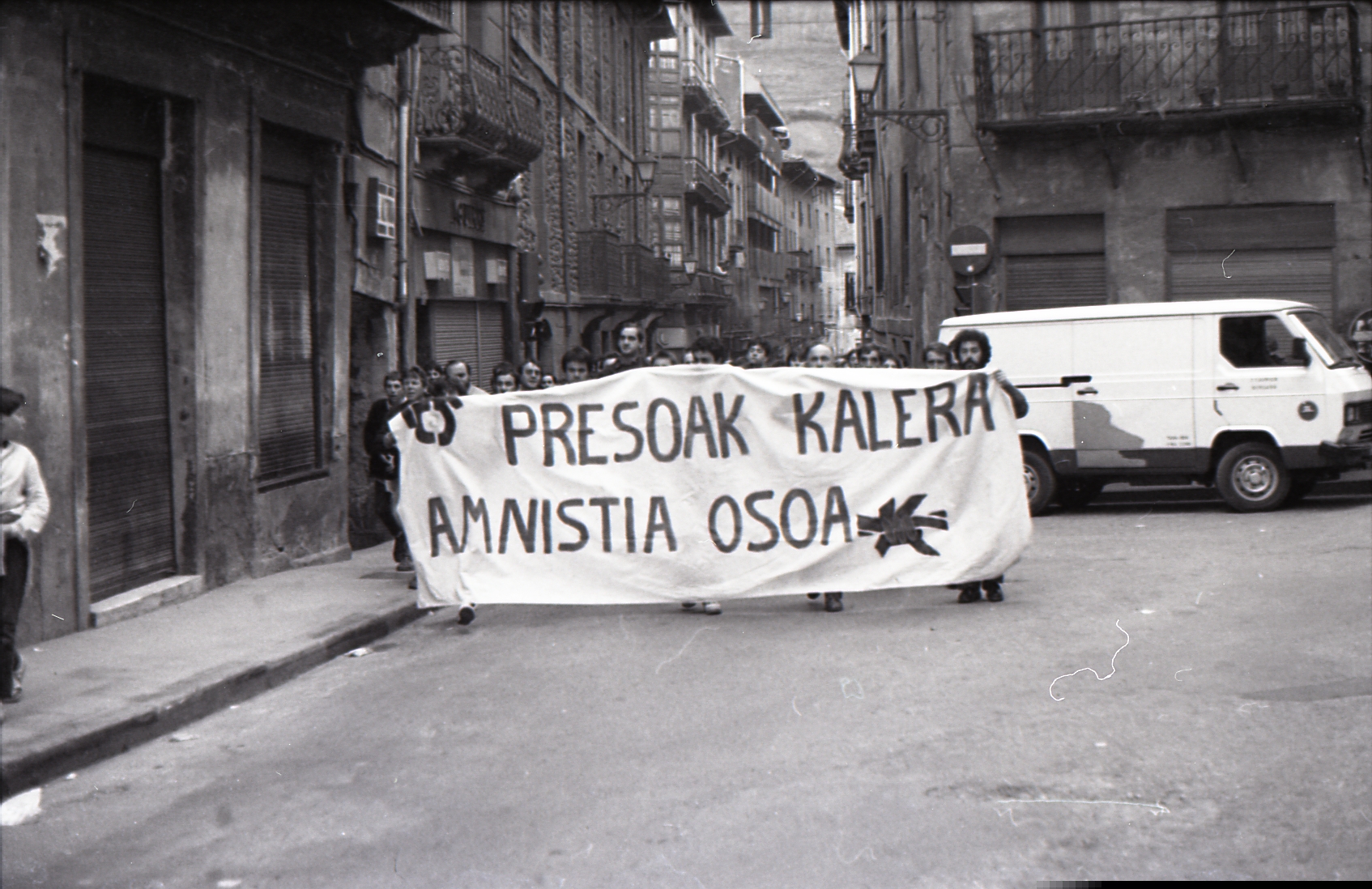 | Presoen eta amnistiaren aldeko manifestaldia. "Presoak kalera. Amnistia osoa" pankartarekin |