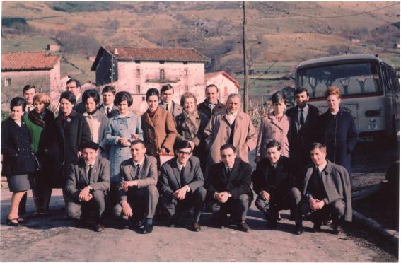 Nesken talde erretratua, denak uniformez jantzita, erdian Amabirjinaren irudia