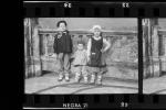 Bi neska mutiko eta erdian haur bat baserritar jantzita
