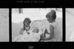 Bi neskatila haurtxo bat erdian dutela.