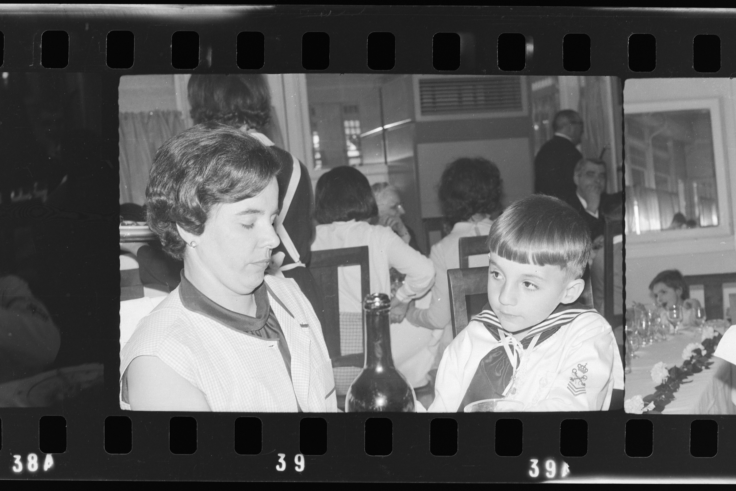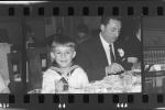 Lehen jaunartzea egin duen mutiko bat ondoan gizon bat.