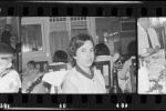 Emakume baten erretratoa, atzean emakume gehiago ikusten dira mahai inguruan eserita.