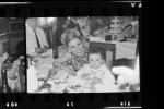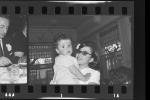 Ezkontza bateko argazkia. Emakume bat altzoan haur bat duela.