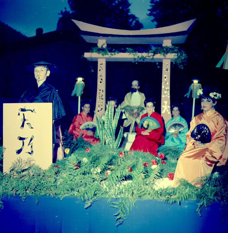 San Martinen danborradako karroza: neska mutikoak japoniar jantzita