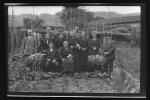 Familia erretratua baserriko ortuan urrezko ezteien ospakizun egunean