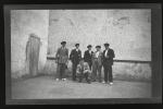 Gizon taldea aurrekaldean eta atzean Elgeta herria bonbardeatua izan ondoren