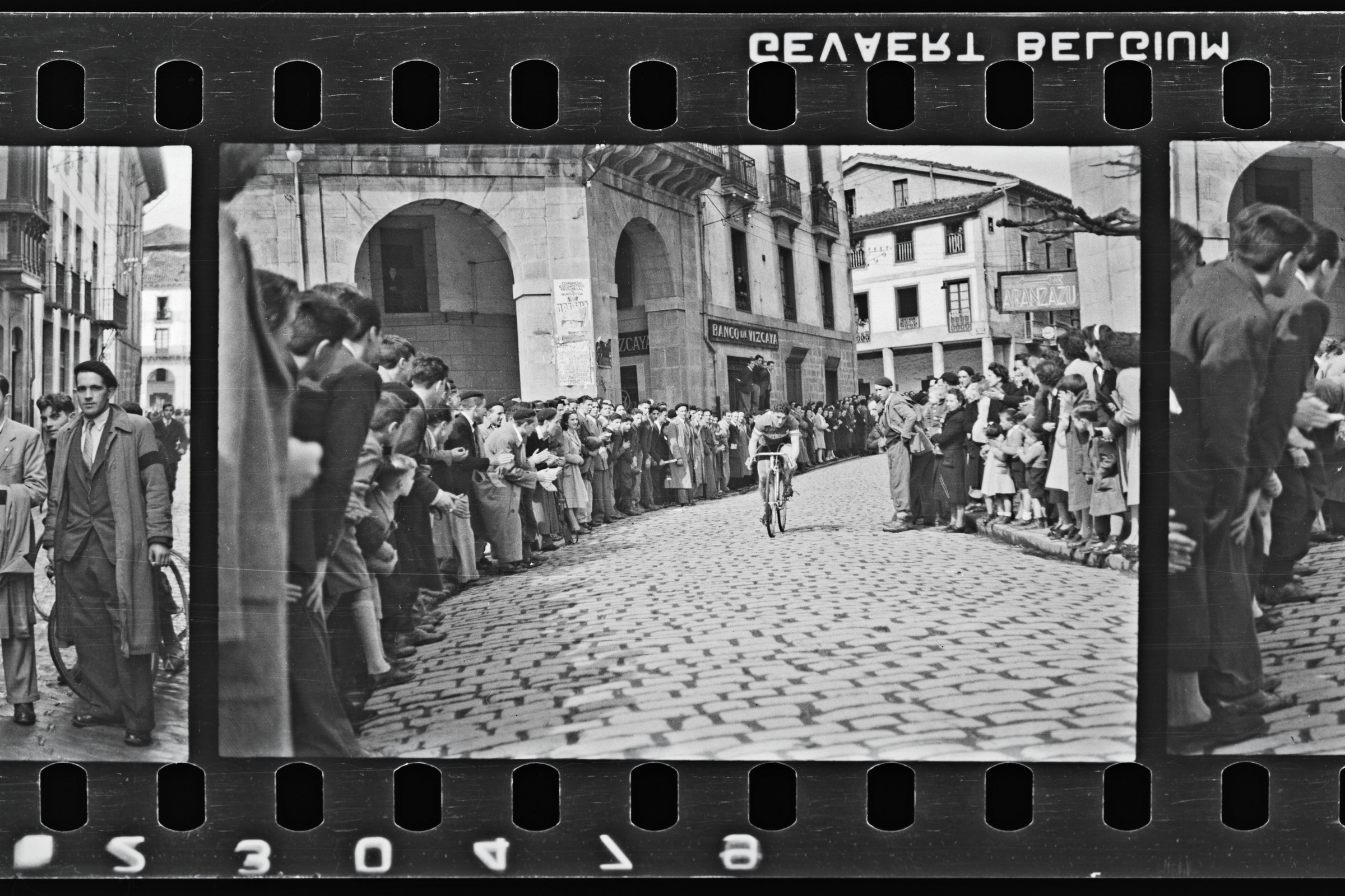 Txirrindularia Oñatiko plazatik zehar lasterketan