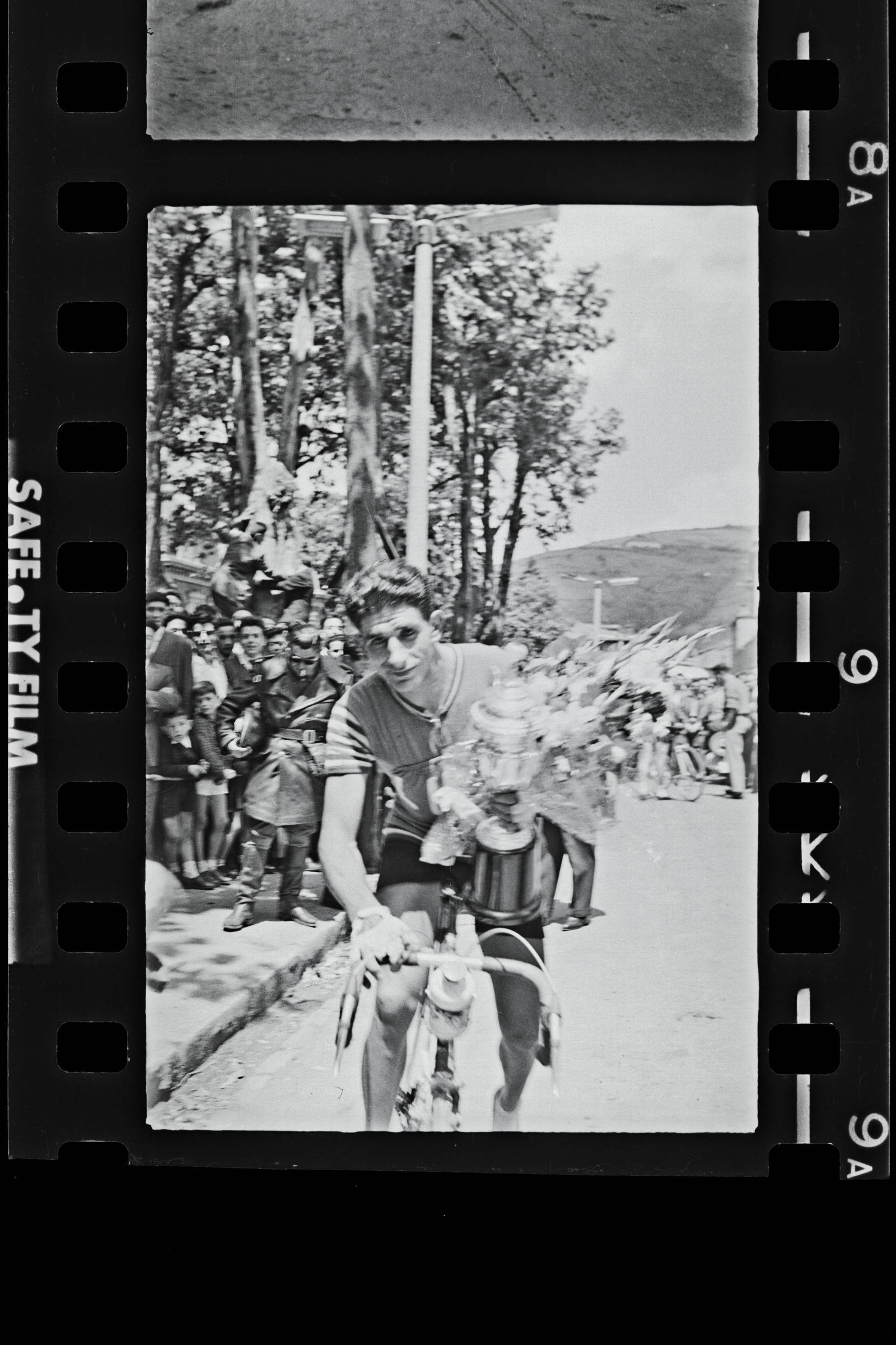 Txirrindularia ohorezko ibilbidea egiten loresorta eta koparekin