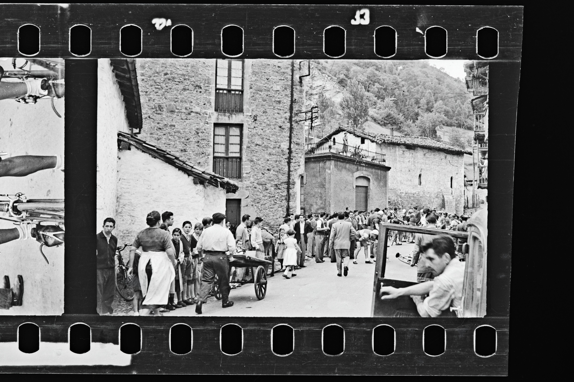 Ikuslegoa txirrindulari lasterketaren irteeraren zain: Ezkerrean arrainsailtzailea ikus daiteke; barrenean Karloskua baserria